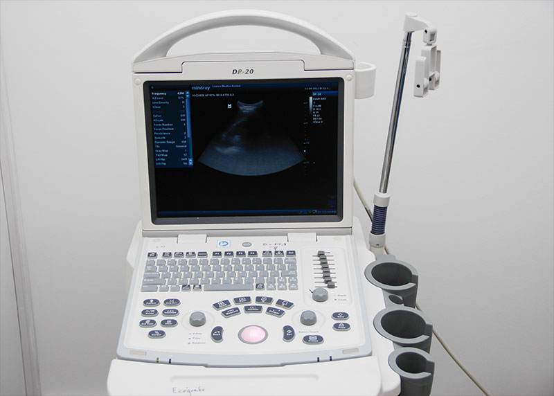 Ecógrafo Mindray Z5, con Doppler color nativo y 2 transductores, uno convex multifrecuencias de 3,5-5 MHz; y otro linear 7,5-10 MHz.